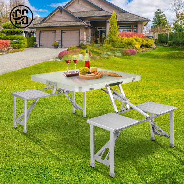 Cette table de camping pratique, résistante et facile à transporter se plie et se range sous format valise avec poignée. Faites de vos prochains pique-nique un jeu d’enfant avec cette table pliante et ses quatre sièges intégrés. Parfaite pour le camping et pour pique-niquer en famille ou entre amis !